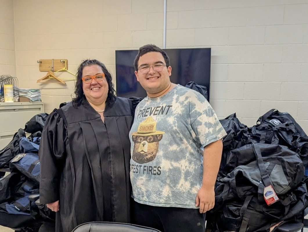 Peter Willner (right with Referee Dawn Hoffman) recently graduated from International Academy West High School and was part of Boy Scout Troop 272 in Farmington Hills. Peter developed the idea of creating “Go Bags” for kids entering foster care for his Eagle Scout Service Project. Peter learned that some children had to carry their belongings in trash bags to their new foster home placement, and he wanted to find a solution.