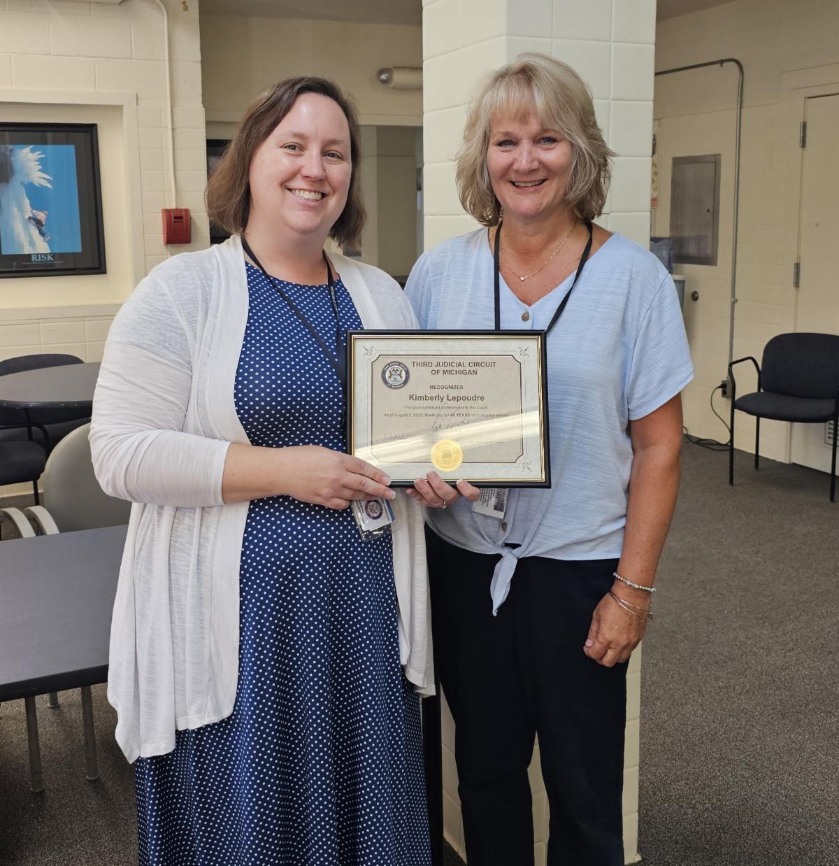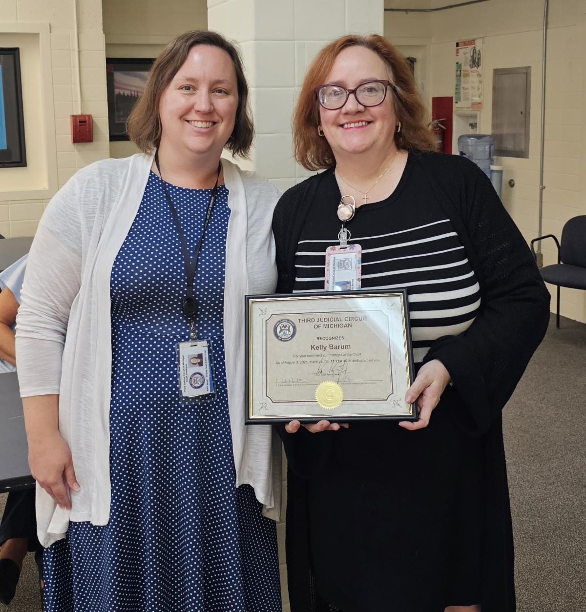 Congratulations to Family - Domestic employees Kimberly LePoudre and Kelly Barum for 40 and 15 years of service to Third Circuit Court!