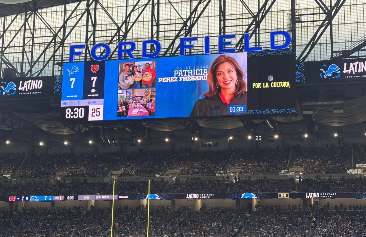 Third Circuit Court Chief Judge Patricia Perez Fresard was recognized with the Latino Heritage Award by the Detroit Lions organization on Sunday, September 14, during the team’s home game against the Chicago Bears at Ford Field.