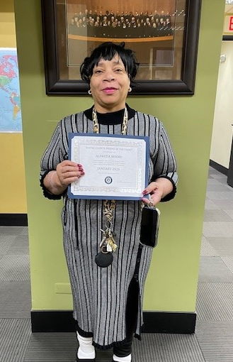 The January 2026 winner is Alfreda Moore, Domestic Relations Specialist in Case Establishment.