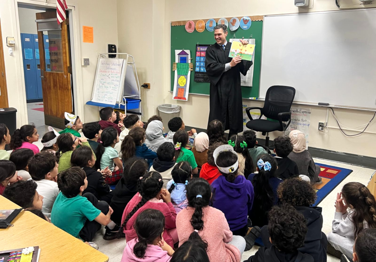 Following the reading, both Judge Abraham and Judge Elassal spoke with students about their role as a judge, explaining in simple terms how courts help resolve disputes and ensure fairness in the community. The students had the opportunity to ask questions, gaining firsthand insight into the judicial system and the people who serve within it.