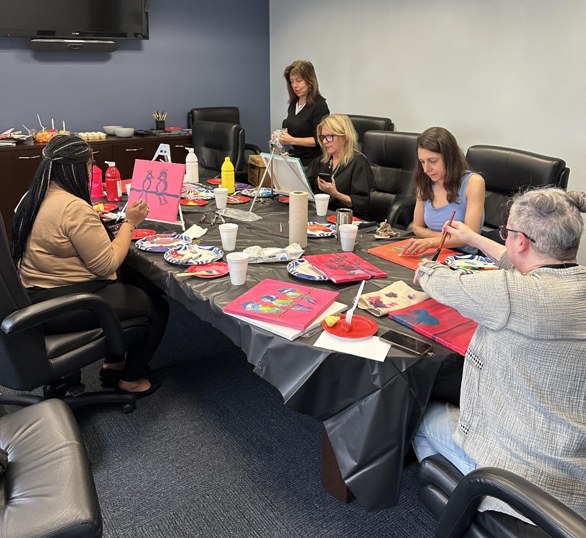 Charlene Dozier, Nancy Hames, Arica Jones and Fran Yturri joined Judge Patricia Perez Fresard for a painting session in March.